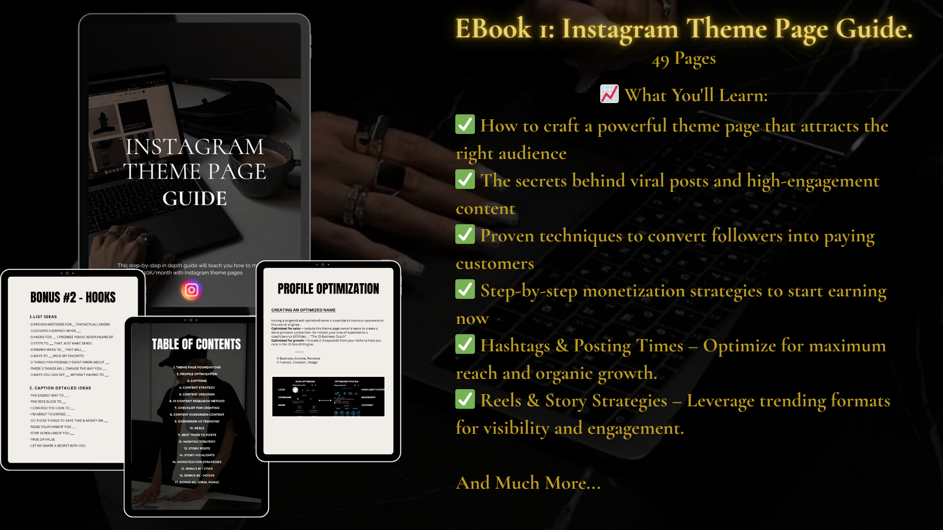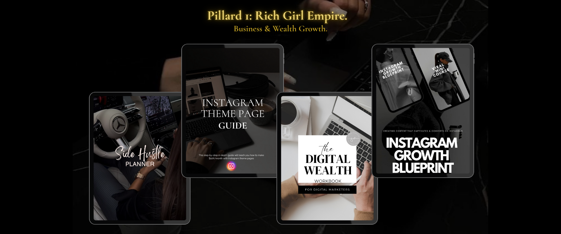 You'll get the Insta Theme Page Guide (your shortcut to viral growth), the Side Hustle Planner (because yes, you CAN build this while working your 9-5), and the Digital Wealth Workbook that walks you through creating income streams that actually work.